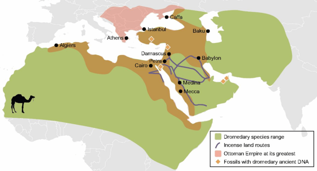 Er is veel gepubliceerd over de domesticatie van kamelen en dromedarissen. Alle bestaande dromedarissen zijn volgens vele bronnen gedomesticeerd. Van de Bactrische kamelen bestaat naast de gedomesticeerde soort nog altijd wel een wilde variant. Van dromedarissen wordt aangenomen dat hun domesticatie ergens in de overgang van de tweede naar de eerste eeuw voor Chr. begon (ter vergelijking: geit, schaap, koe en varken werden rond 8000 v. Chr. gedomesticeerd, het paard rond 4000 v. Chr.). Van oudsher gebruiken de nomaden van de Afrikaanse Sahara-regio dromedarissen in hun traditionele manier van leven voor melk, wol en transport. Onderstaand plaatje laat zien hoe wijd verspreid de dromedarissen waren en zijn.